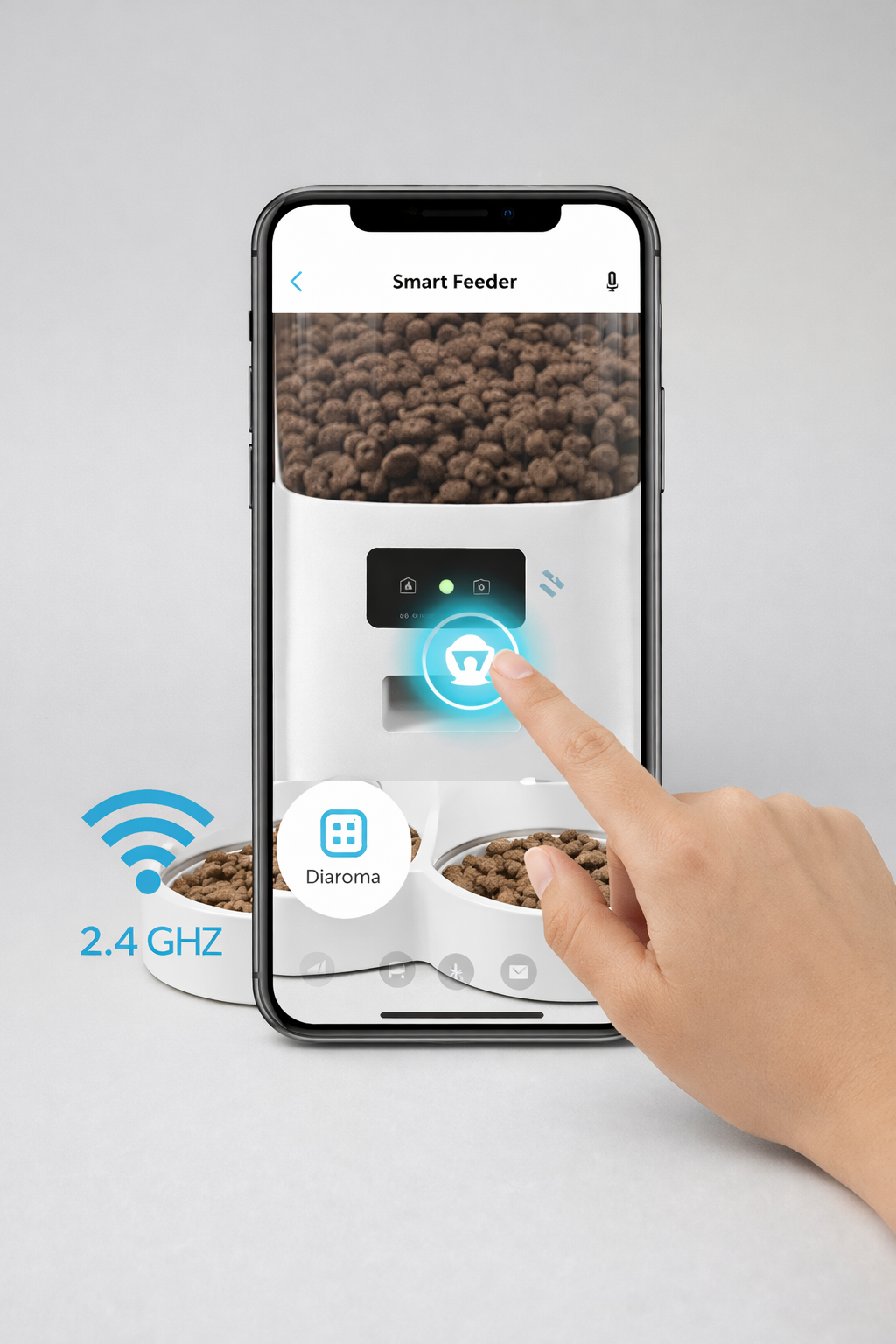 Sí. Es compatible con WiFi 2.4G y se controla mediante una app para iOS y Android, desde donde puedes programar comidas, monitorear a tu mascota y recibir alertas.