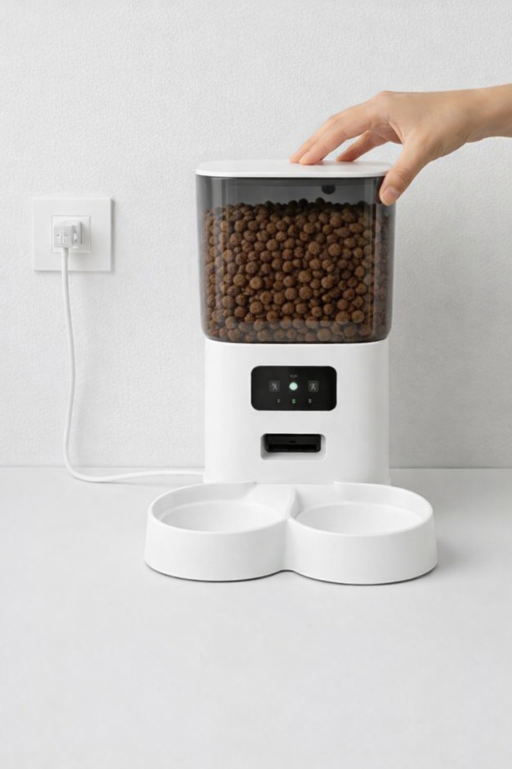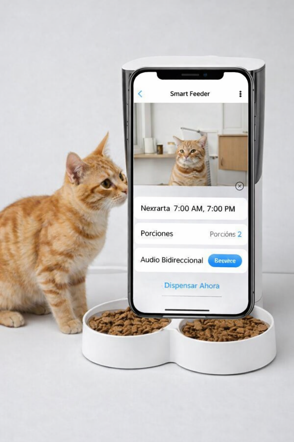 Controla las comidas de tu mascota desde cualquier lugar con la app, cámara 1080P y audio bidireccional. Su capacidad de 5L y el sistema de doble energía garantizan hasta 15 días de alimentación continua, incluso durante cortes de luz 🐾